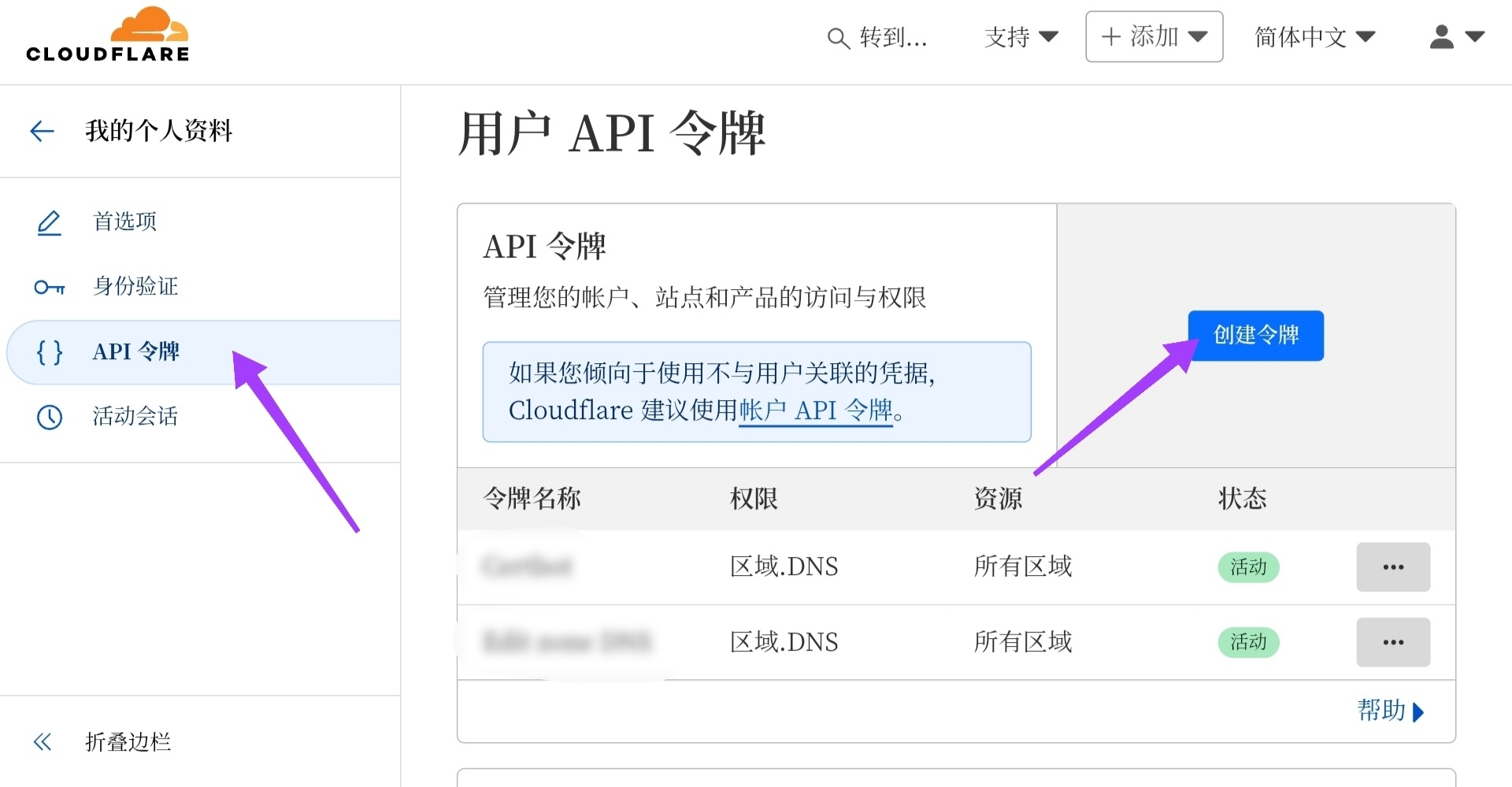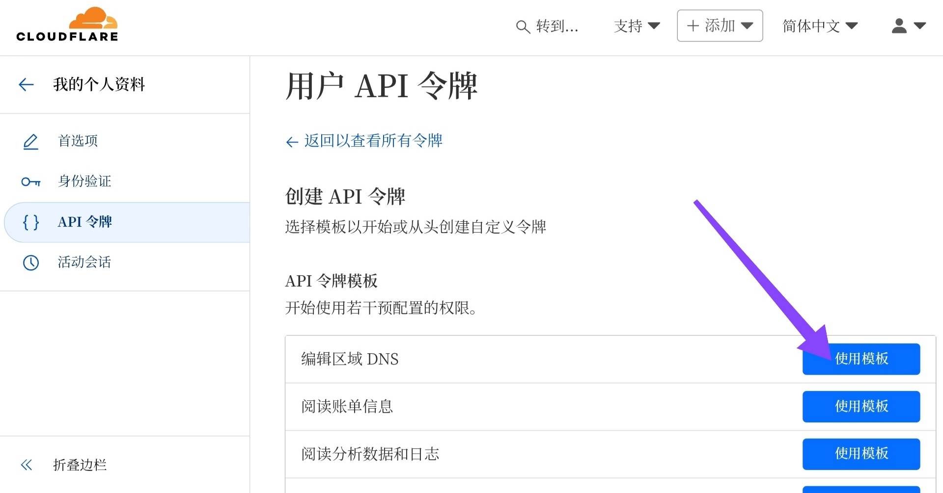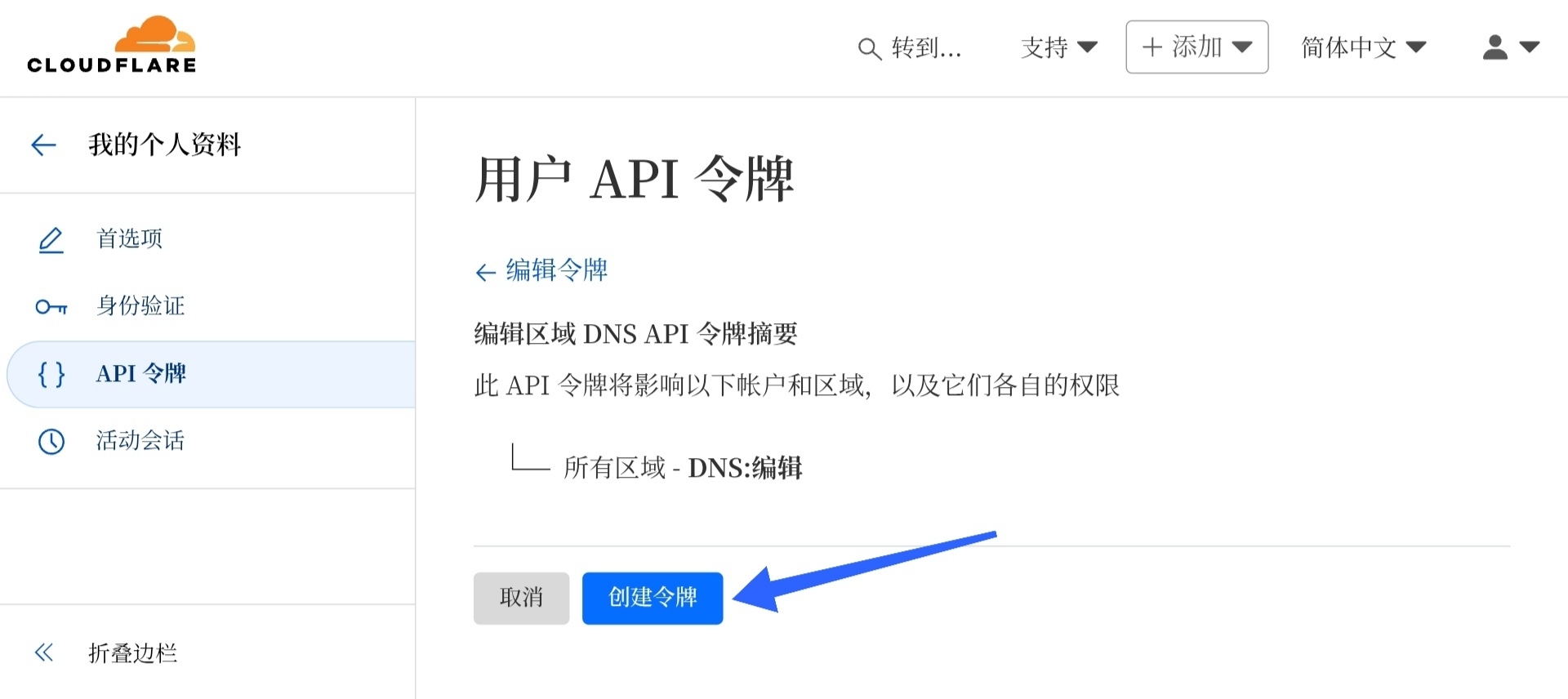 创建 Cloudflare API 令牌